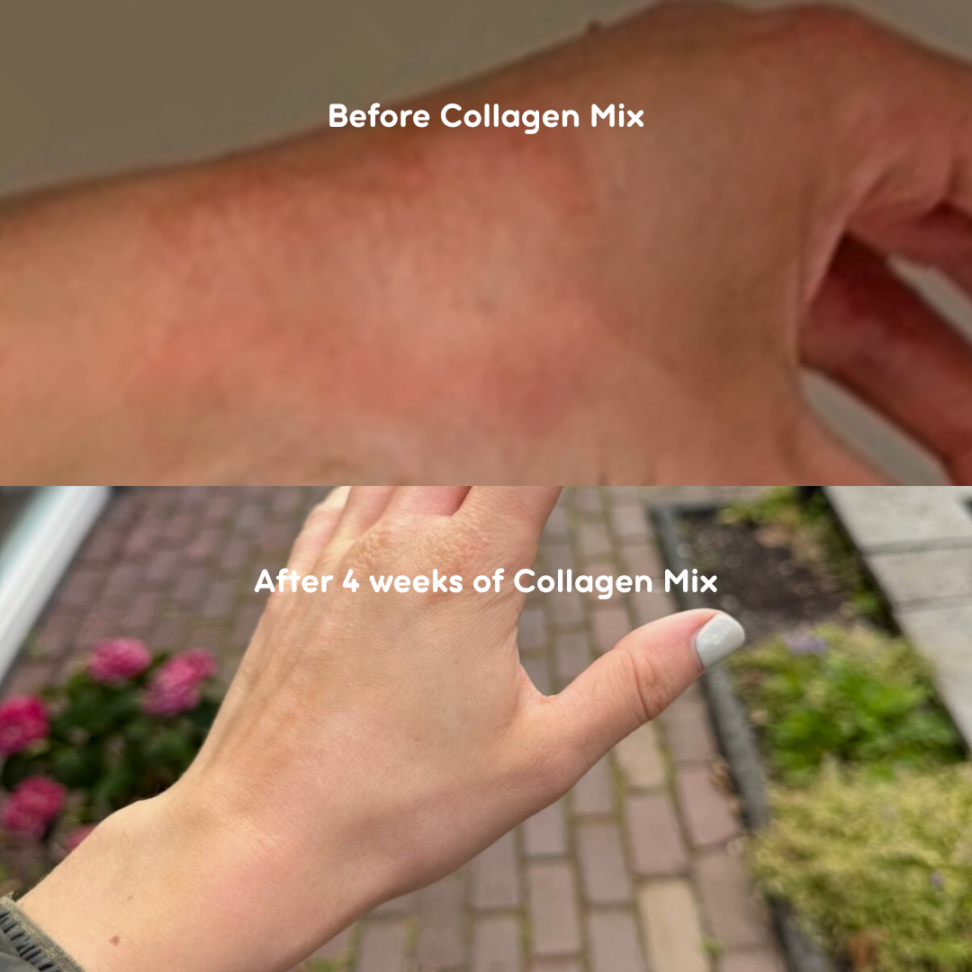 Mit zunehmendem Alter nimmt die Kollagenproduktion ab, was zu Falten und Festigkeitsverlust führt. Collagen Mix stimuliert die natürliche Kollagenproduktion und unterstützt Ihre Haut mit Vitamin C aus Heidelbeeren.